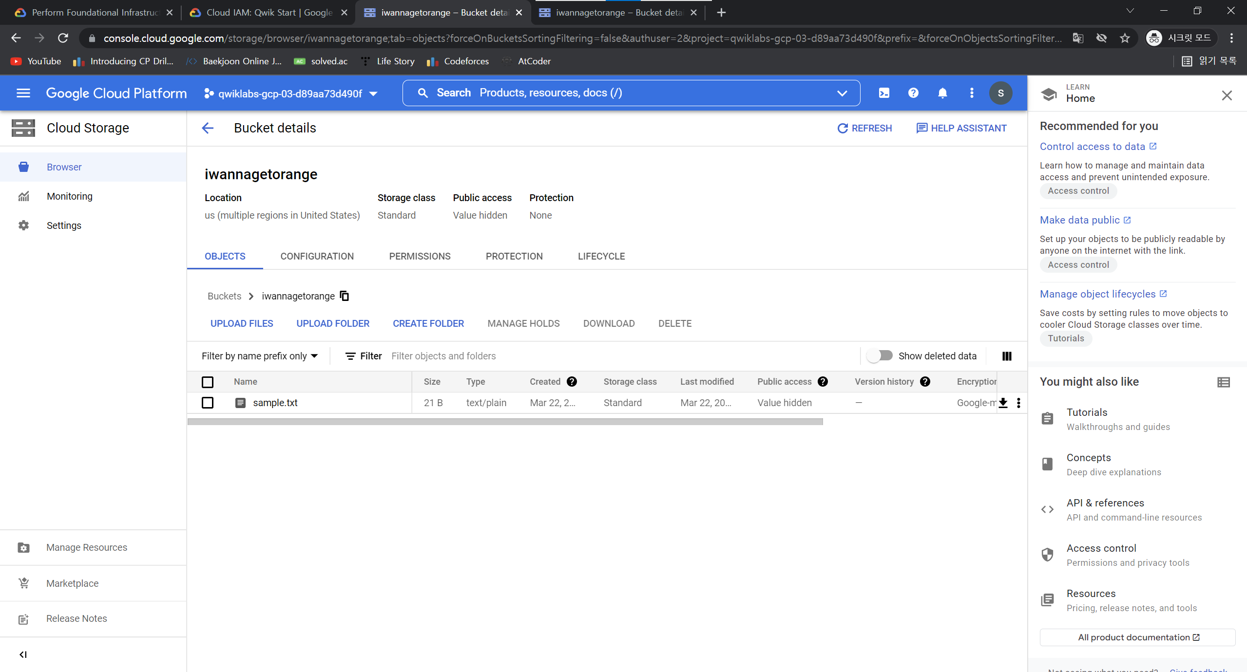 | Cloud Storage: Qwik Start - CLI/SDK (0) | 2022.03.14 |