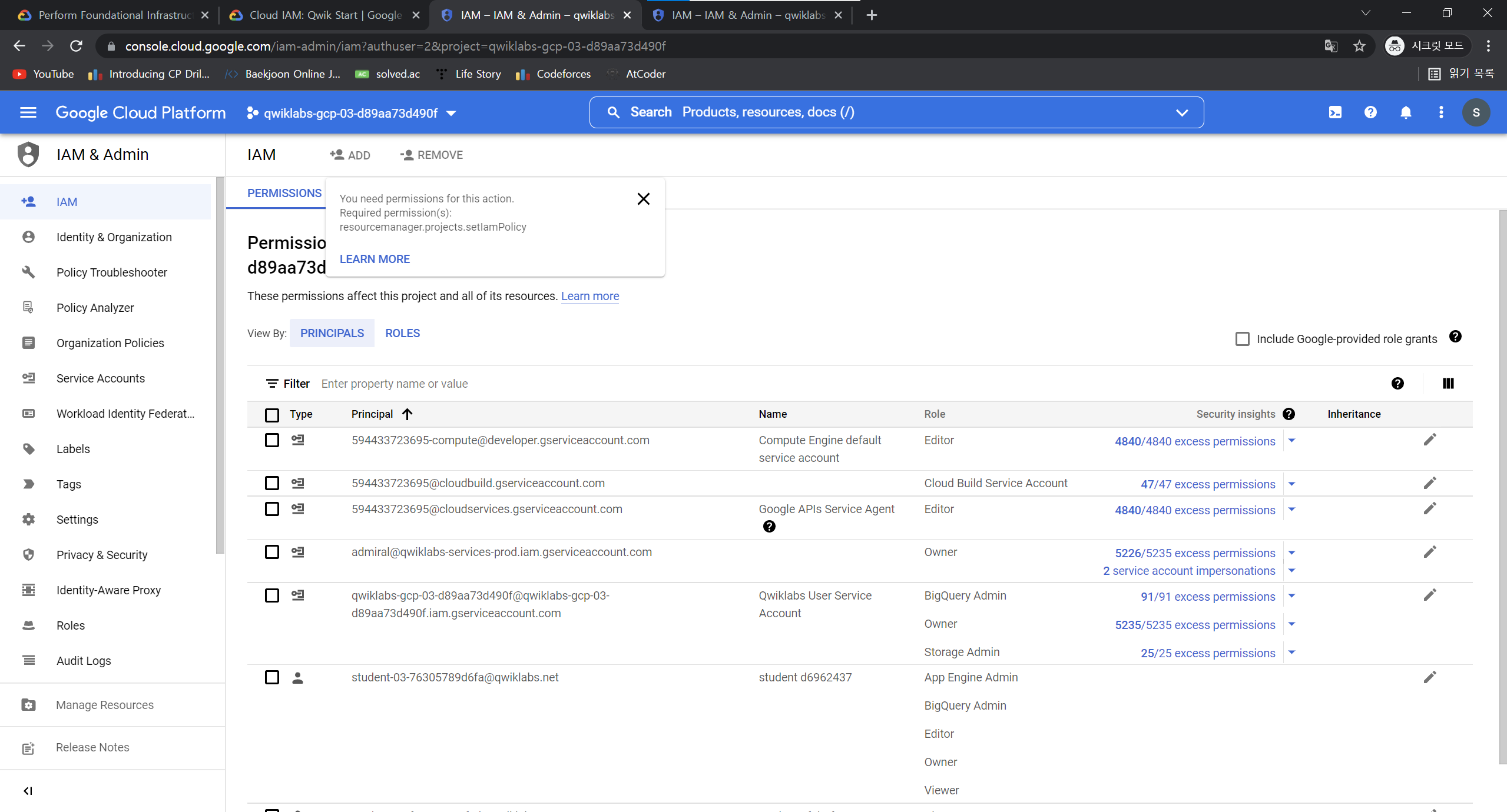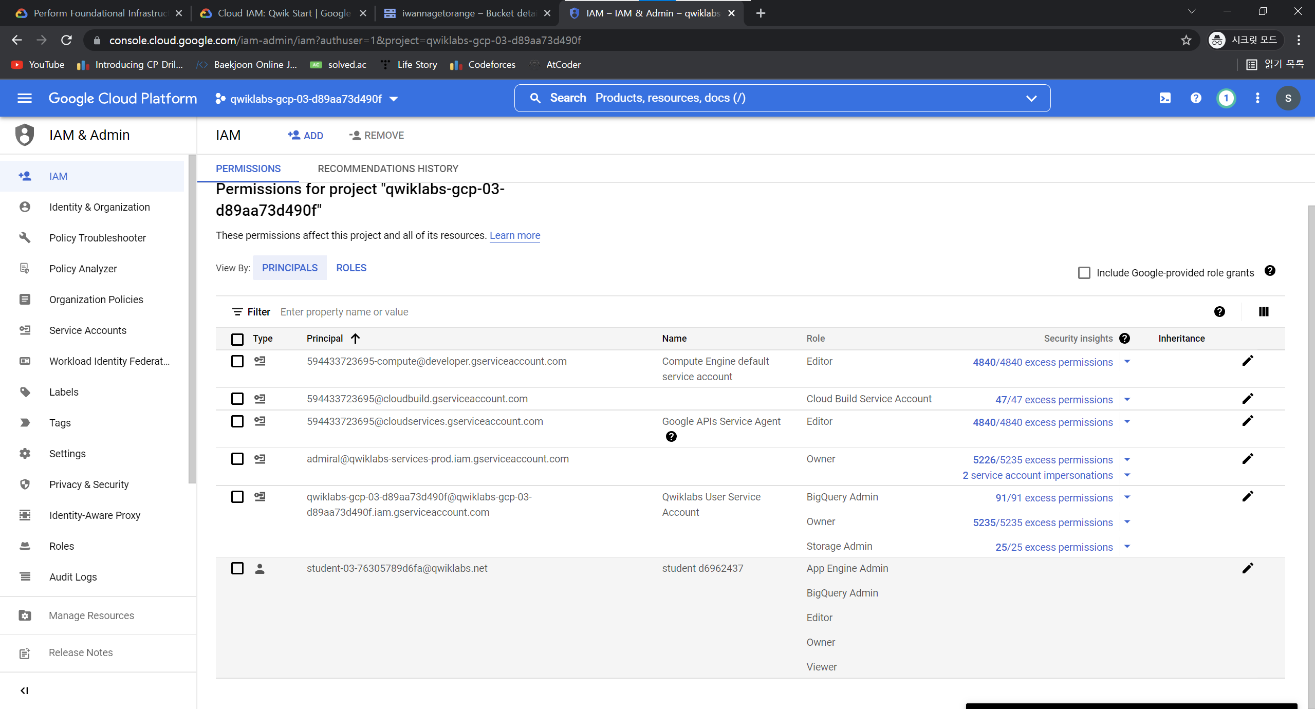 이렇게 cloud resource에 대한 권한을 부여하고 삭제할 수 있다.