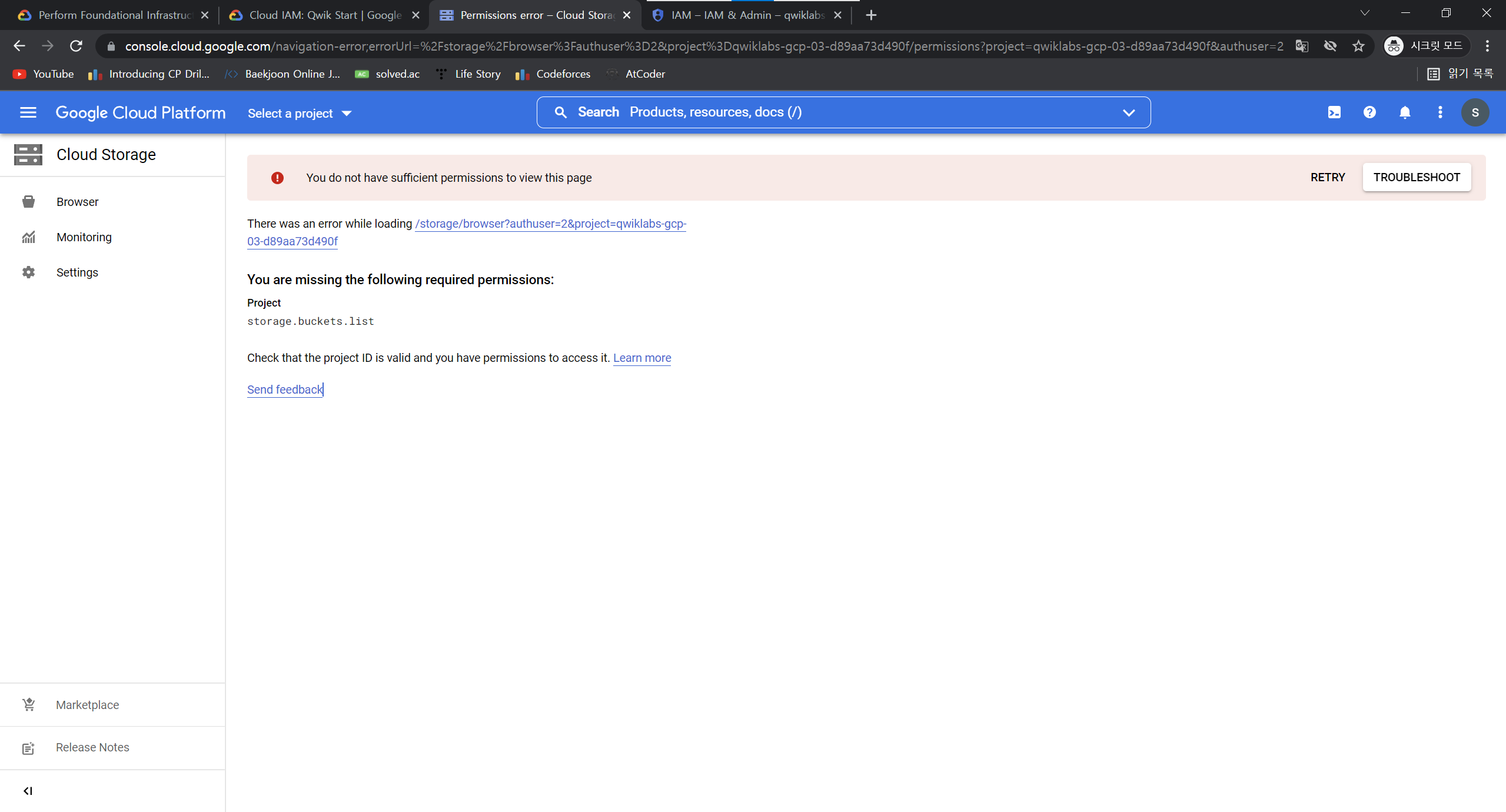 Permission error을 확인할 수 있다. (조금 시간이 걸릴 수 있다.)