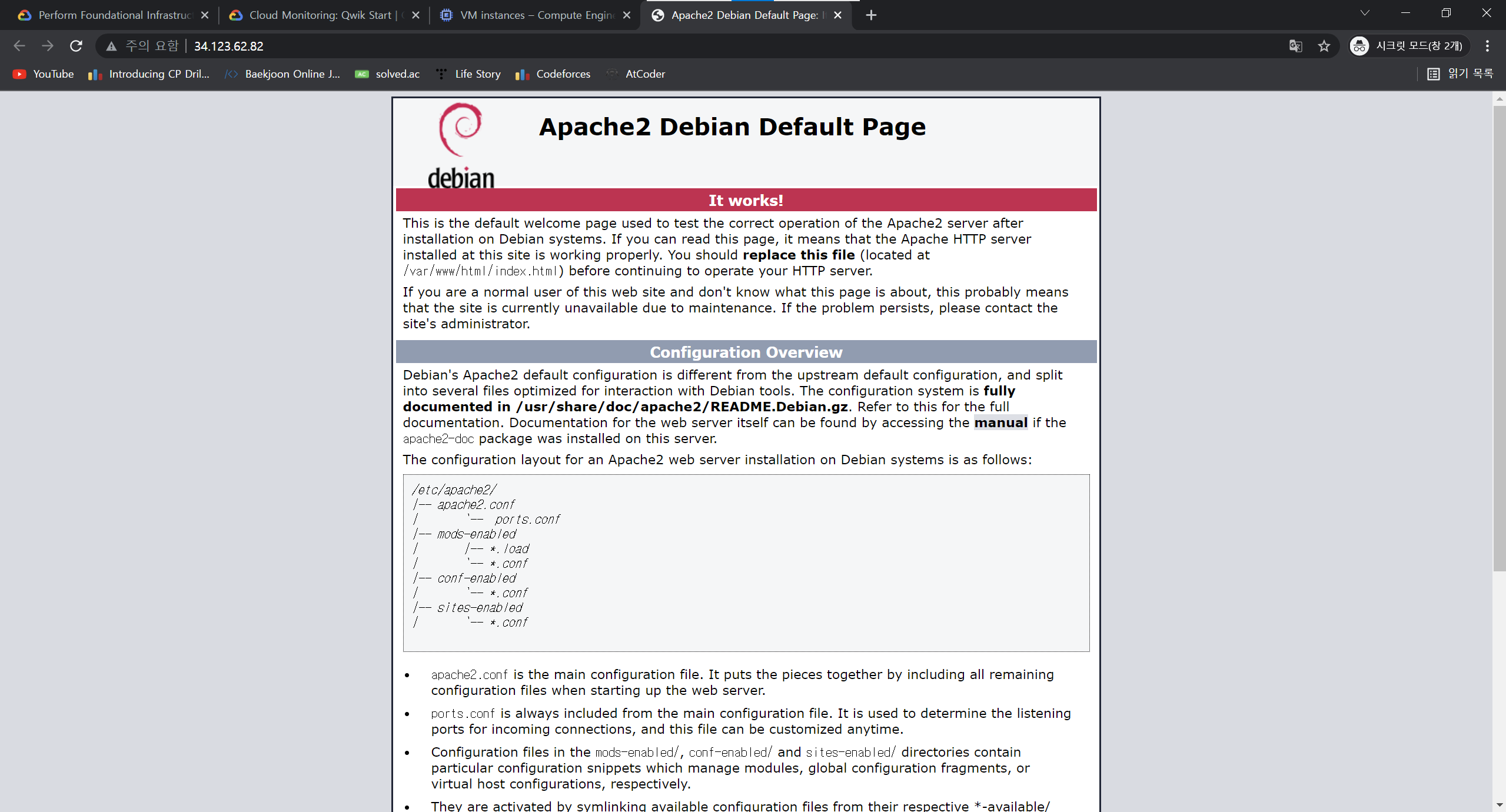 다시 Cloud Console로 돌아가 vm instance의 external IP로 접속한다.