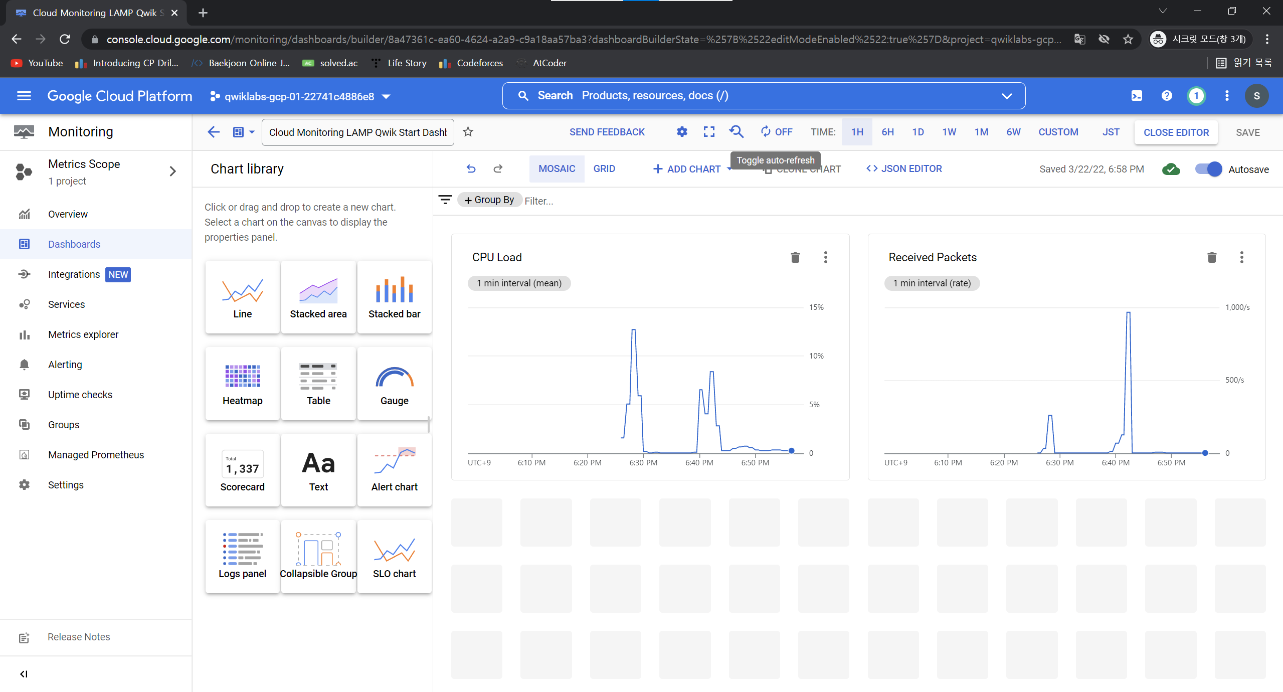 이 실습에서는 Cloud Monitoring으로 Google Compute Engine VM(가상 머신) 인스턴스를 모니터링하는 방법에 대해 살펴봅니다. 짧은 동영상인 <A HREF="https://youtu.be/rGMimov8MPg">Google Cloud Monitoring으로 모든 클라