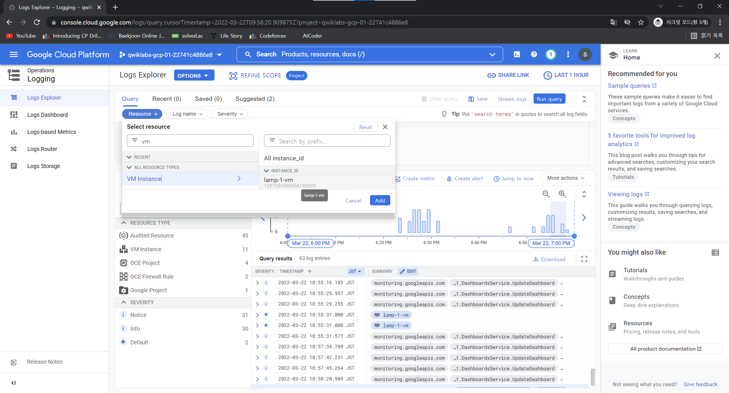 Navigation menu -> Logging -> Logs Explorer 클릭